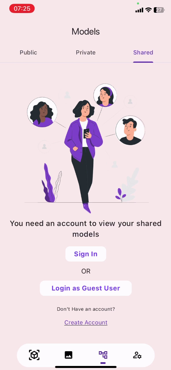 (you will need to use Guest User Login if you dont have an account, if you already have an account your shared models will directly appear in Shared Tab)