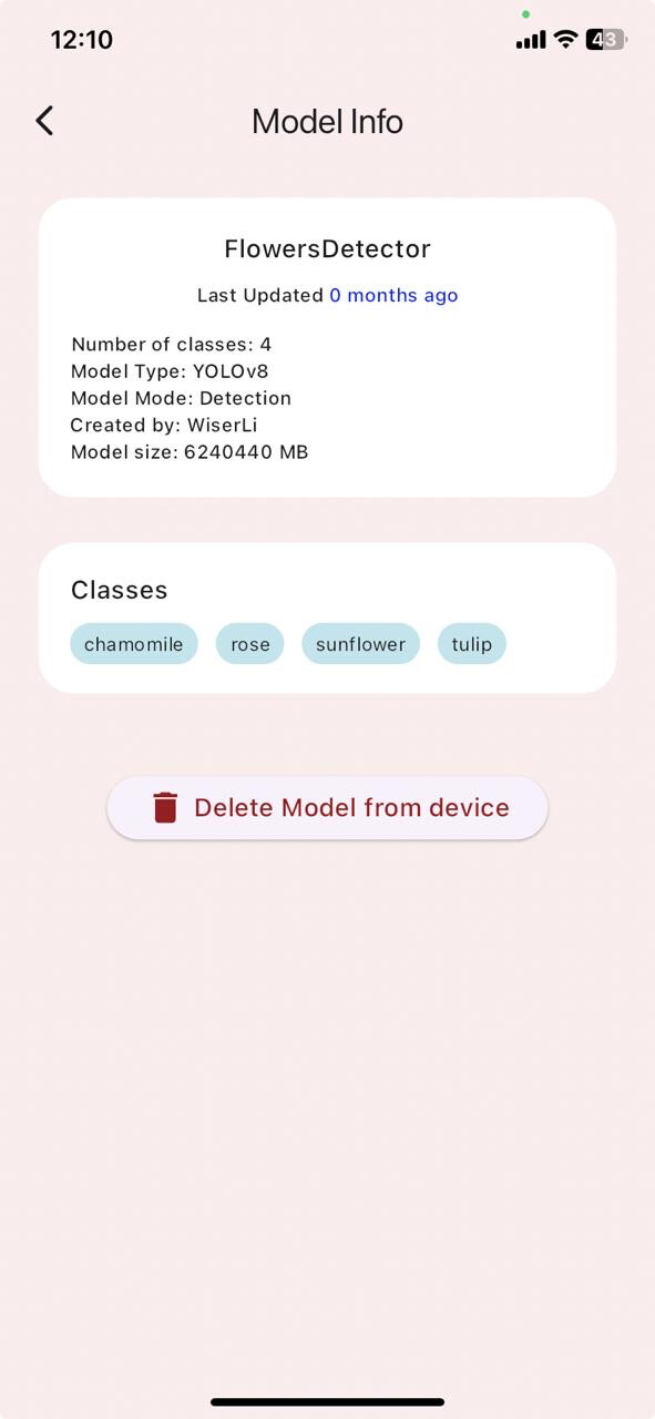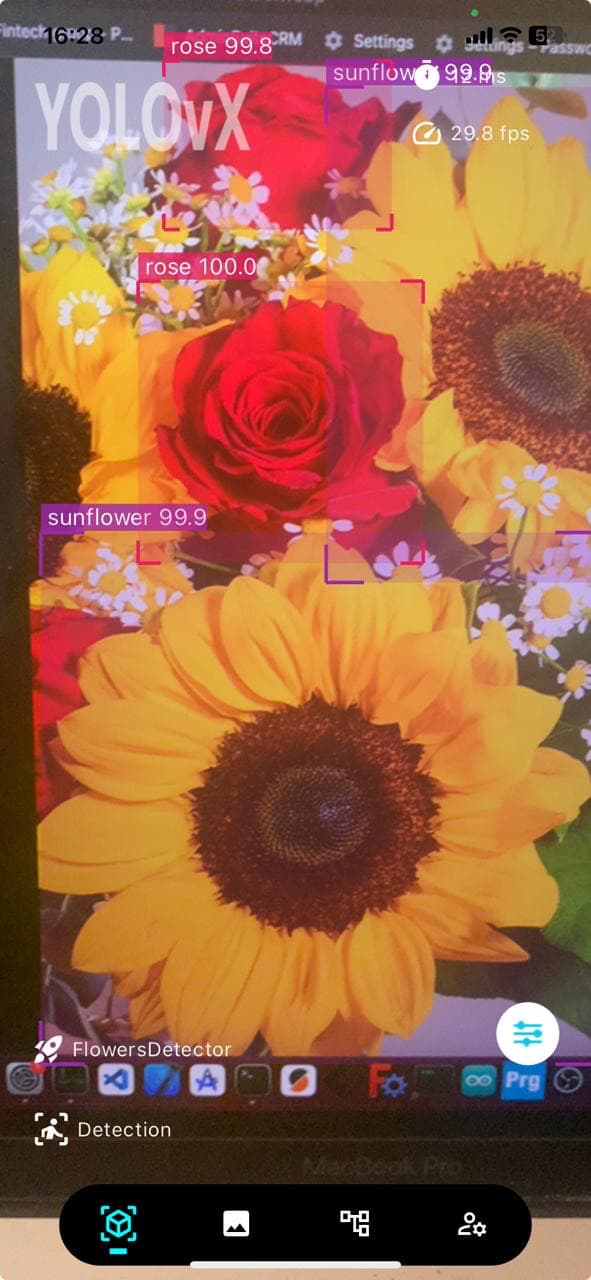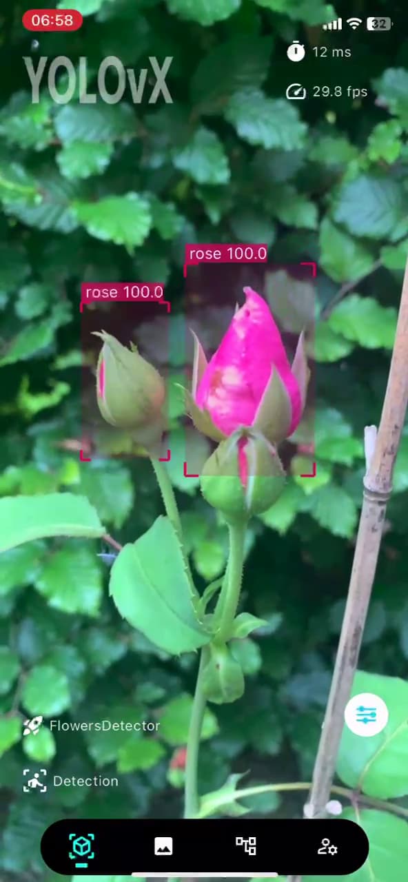 Once you are satisfied with the model performance you can now simply download the model from Output directory and upload it to the YOLOvX App. Now simply RUN in the Garden to find those nice flowers and see the detection, some screenshots attached here for your reference.