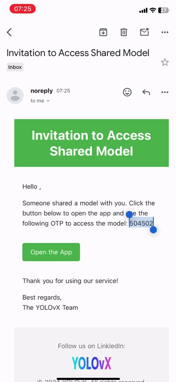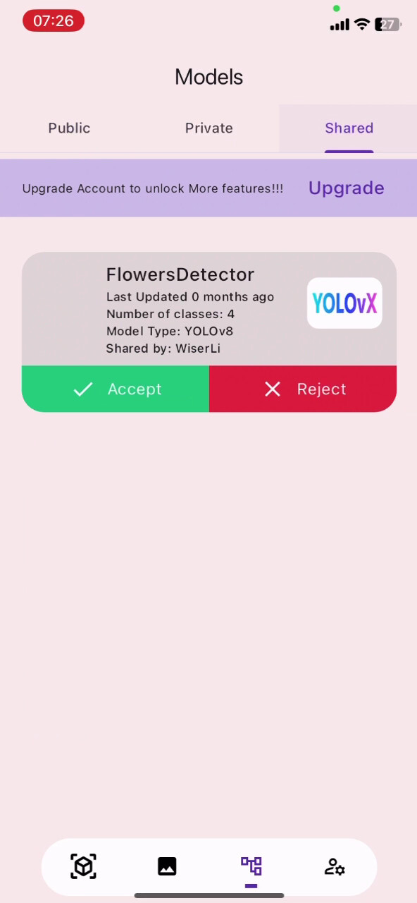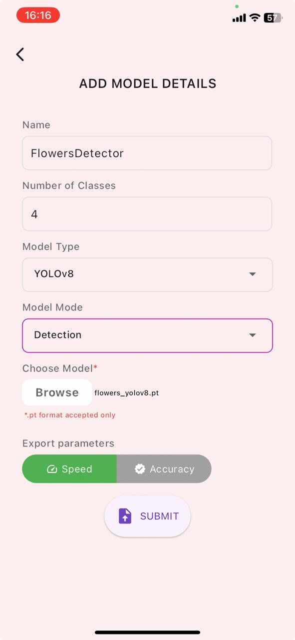 Please note that YOLOvX SDKs are under testing now, we will soon release the SDKs so that you will simply add two line of code right after training procedure and the model will be uploaded and available in the YOLOvX App for inference.